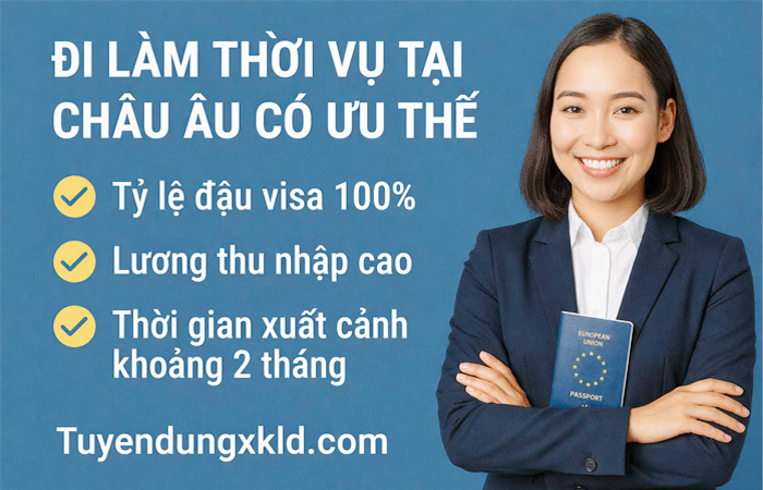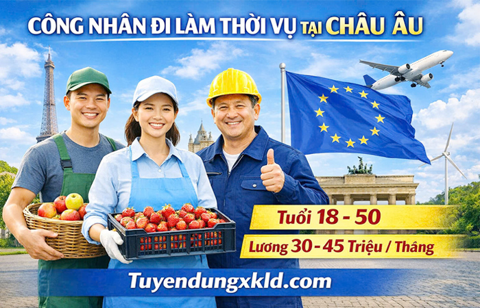 Lao động thời vụ tại châu Âu đang trở thành xu hướng lựa chọn của nhiều người Việt Nam trong năm 2026. Với mức thu nhập hấp dẫn từ 40 – 50 triệu/tháng, thời gian xuất cảnh nhanh và điều kiện tham gia không quá khắt khe, đây là cơ hội lý tưởng cho những ai muốn cải thiện tài chính trong thời gian ngắn.