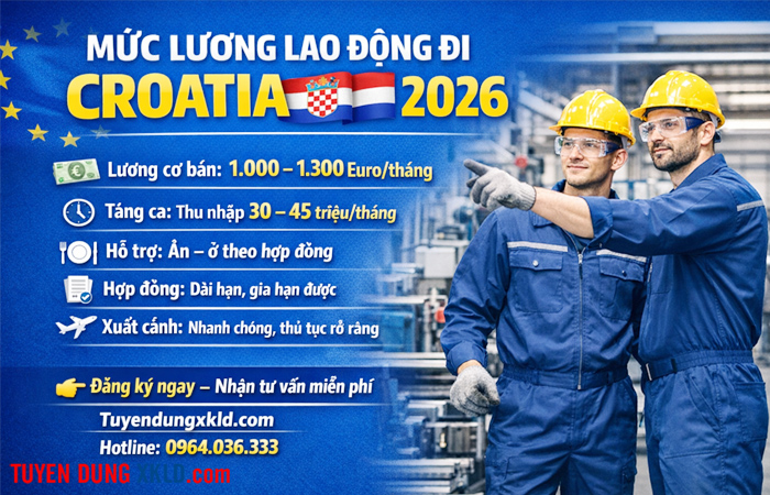 Mức lương xuất khẩu lao động Croatia 2026