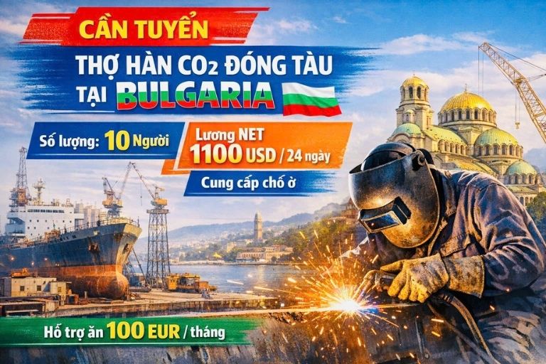 Hiện nay, nhu cầu tuyển thợ hàn CO2 đóng tàu tại Bulgaria đang tăng mạnh do các xưởng đóng tàu châu Âu mở rộng sản xuất. Đây là cơ hội tốt cho lao động Việt Nam có tay nghề hàn muốn sang châu Âu làm việc ổn định, thu nhập cao, chi phí thấp.